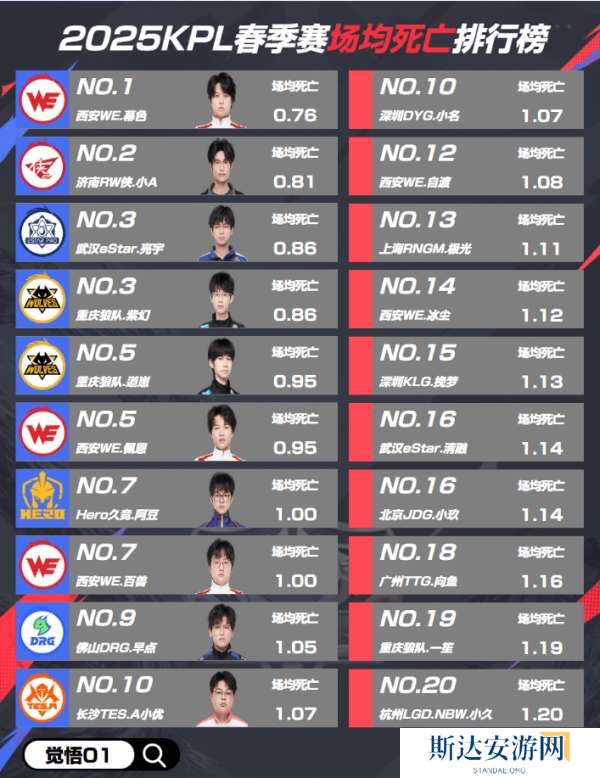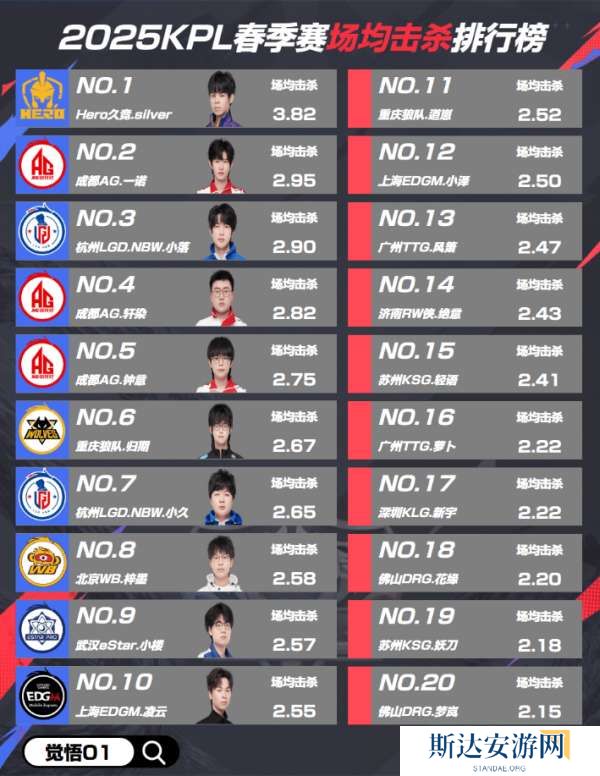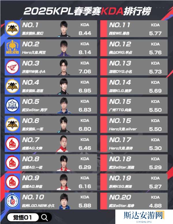 截止3月2日,王者荣耀2025年春季赛常规赛第一轮结束,各项数据排行如下: