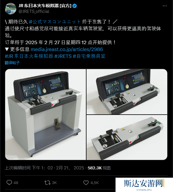继官方模拟火车游戏《JR EAST Train Simulator》在Steam上获得好评后,JR东日本铁路公司(东日本旅客铁道株式会社)又推出了与游戏兼容的主控装置“家用驾驶台”,旨在模拟JR东日本列车驾驶室的仪表板,带来真实的操控体验。