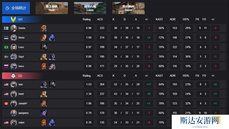 图二莲华古城,上半场G2 6:1开局,随后VIT开始追分,半场双方战平,攻守互换之后G2的枪法优势逐渐确立,通过不断放点反攻战术,G2率先拿到赛点,并将比赛在常规时间内结束,比分锁定在G2 13:9 VIT。