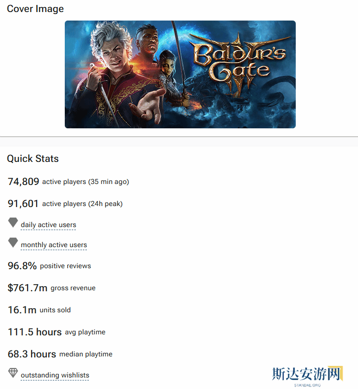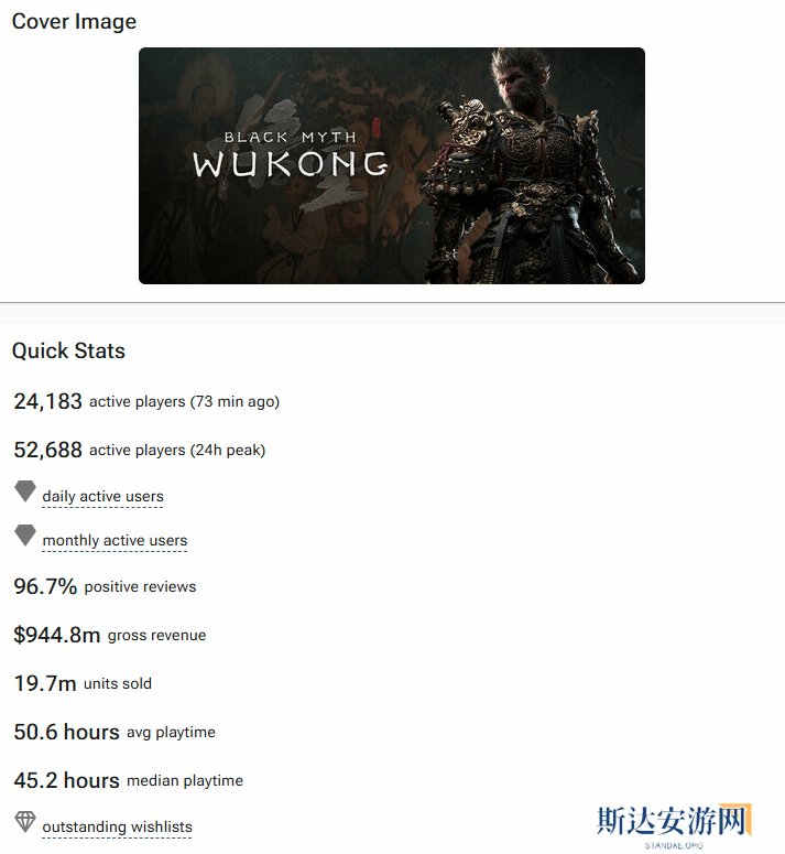 据国外数据分析公司VG Insights的数据显示,截至发稿前,《黑神话:悟空》在Steam平台的收入达到了9.448亿美元(约合人民币68亿),位居Steam游戏收入榜的第二位,前五位分别为《绝地求生》《黑神话:悟空》《三男一狗》《赛博朋克2077》与《博德之门3》。