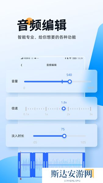 3、音频编辑:支持音频的剪切、合并、调整音量等编辑操作。