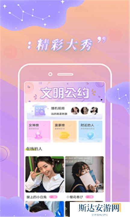 2、高颜值主播:聚集众多高颜值主播,表演才艺,互动聊天。
