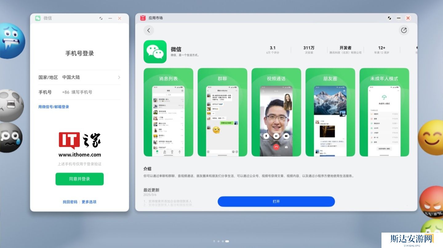 鸿蒙原生版微信 App 已在 1.0.4.16 邀测版本时支持了平板设备安装,但不支持手机、平板端同时登录(即平板无法选择“作为平板登录”用户只能选择其中一种设备进行登录)。本次上线的新版本同样暂不支持该特性,不过手机端华为应用市场已显示其适配了平板设备。
