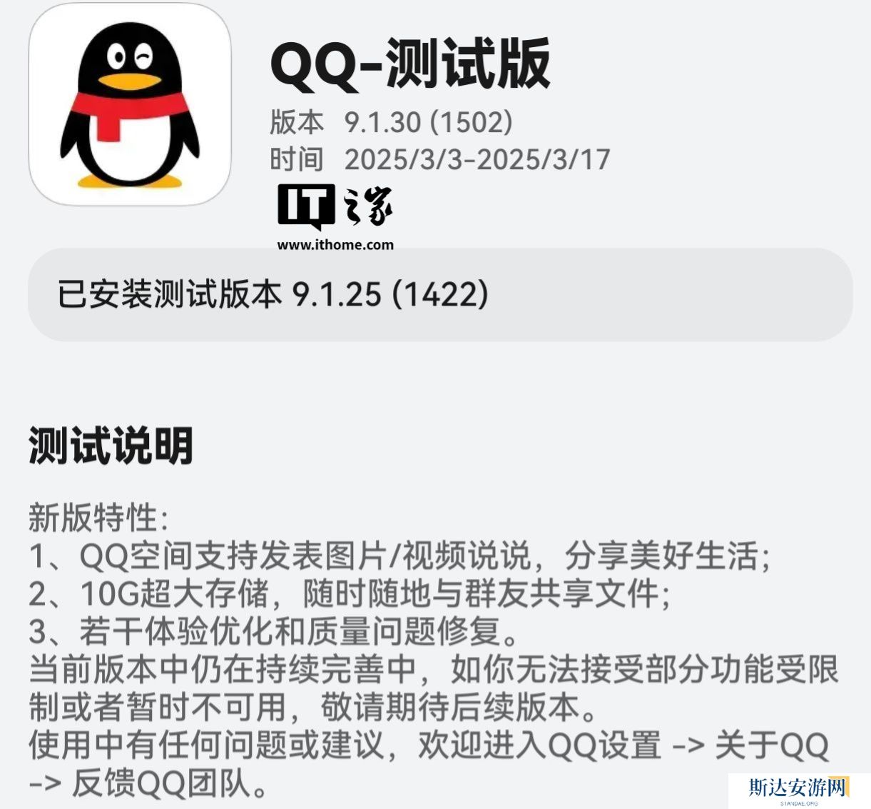 本站 3 月 4 日消息,鸿蒙原生版QQ 应用昨日在华为应用市场(App Gallery)应用尝鲜专区开启 9.1.30(1502)版本邀测升级(需收到短信通知后跳转安装),测试时间为 2025/3/3 - 2025/3/17。