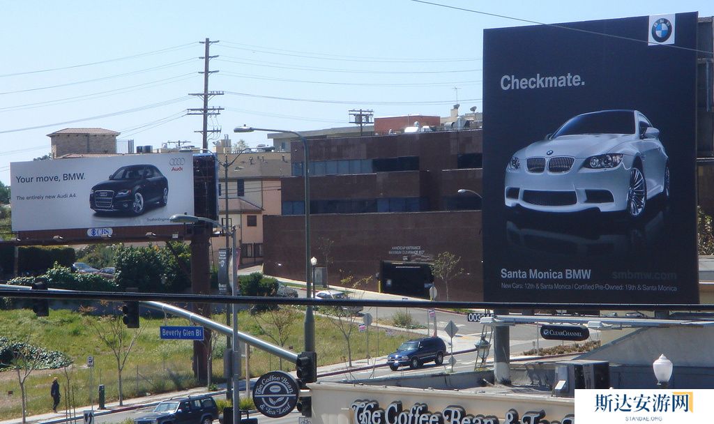 本站注:宝马和奥迪曾在 2009 年展开一场经典广告对决:当时奥迪在加州富人区竖起“A4 棋盘”广告牌,一句“该你出招了,宝马”拉开战幕。宝马迅速买下相邻广告位,用 3 系配文“将军”反击。奥迪则以超跑 R8 回敬:“你这个小兵和我这个国王不是一个量级的。”