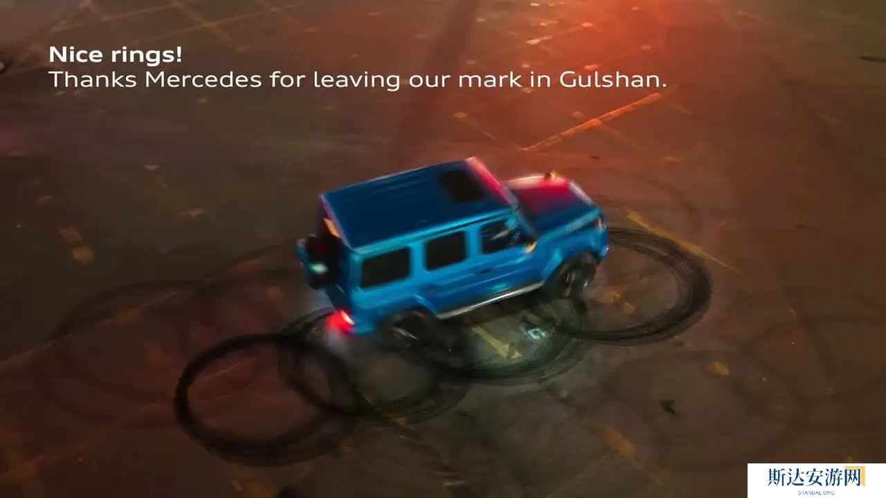 这乍一看是一个奇怪且不合时宜的选择,但画面中的电动版 G580 暗藏玄机:凭借坦克掉头功能,车辆可原地旋转画出完整的四环标志。配文调侃道:“漂亮的圆环!感谢奔驰帮我们在古尔尚留痕。”作为达卡顶级富人区,古尔尚的路面俨然成了奥迪的行为画布。