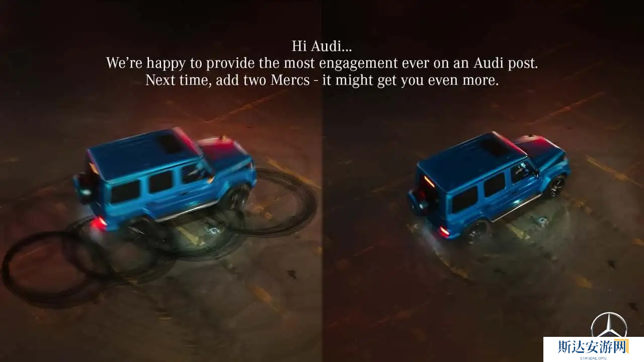 本站 3 月 4 日消息,据外媒 motor1 今日报道,奥迪在社交媒体上演了一出“借力打力”的营销好戏。在其孟加拉国官方 Facebook 账号上,一则贴文引发关注 —— 主角竟是奔驰招牌的 G 级越野车。