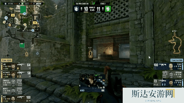 Liquid乘胜追击将领先优势扩大到4-0,但第五回合Niko掏出主鹰完成三杀实现ECO翻盘,士气大振的Falcons将比分追平至4-4,但完成经济累积的Liquid稳扎稳打全员发挥,反观Falcons这边狙击手位置degster被ultimate彻底对位压制,TeSeS也是手感全无,一度人头难以实现零的突破,Falcons难以打开局面,上半场Liquid以8-4领先。