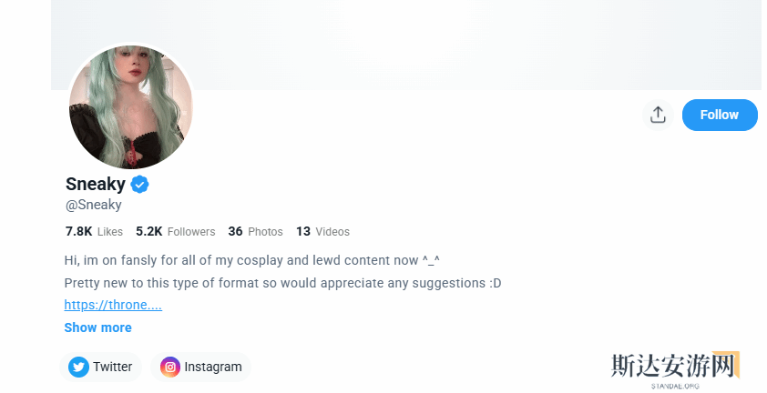 他在该网站的个人简介中写道,“大家好,我现在在这里发布所有的COS和擦边内容!我对于这一赛道还比较陌生,所以感谢大家的任何建议!”