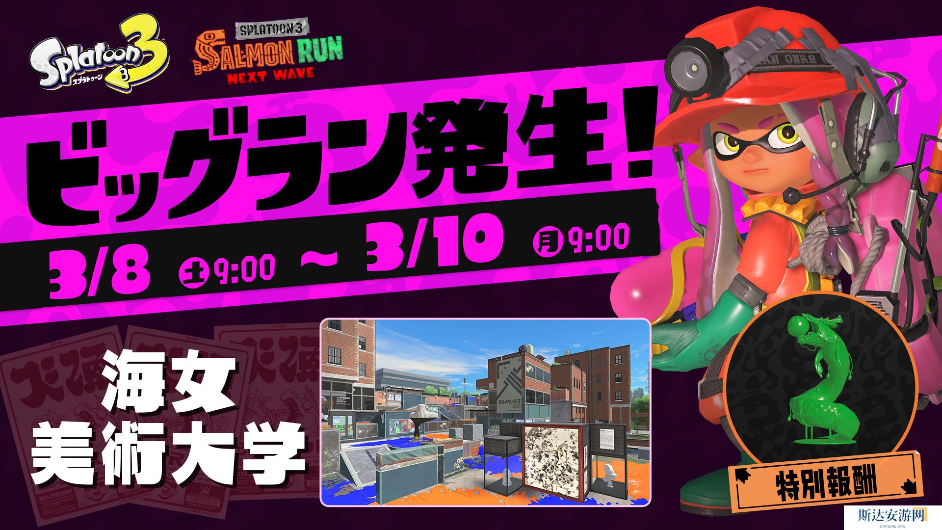 《喷射战士3》新一期大型跑活动将于3月8日至10日开启,地图为“海女美术大学”。