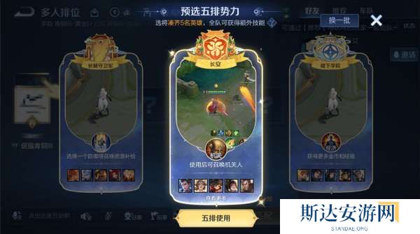 而如果五排所选的英雄不是同阵容则激活灵宝召唤技能,召唤灵宝辅助作战,该玩法仅限五排。