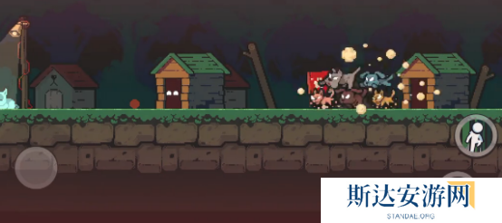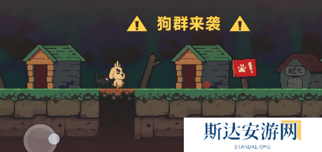 作为特殊关卡,玩家进入之后就会化身成为一只黄色的小狗,在丛林当中不断向前走,此关卡中同样也有跳跃冲刺功能。向前走的时候,每当有球丢过来。整个屏幕跳出暗红色,还有严重震感前摇模式,就意味着前方有超大狗裙来袭。道路周围有很多木屋,意识到狗群来临要及时躲到木屋中,躲避危险。