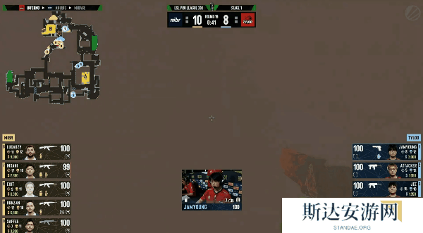 下半场MIBR来到进攻方,手枪局第二时间爆弹B区,展开进攻后被Mercury与JamYoung两人四杀挡住。输掉回合后MIBR选择纯e。