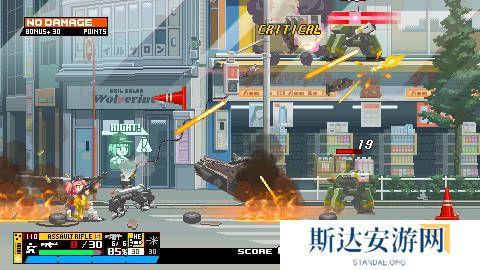 《Nitro Express 》是一款以日本城市为舞台的2D横卷轴枪战动作游戏。玩家可以在游戏中体验像素风活力美少女使用各种热武器进行 360°无死角射击。