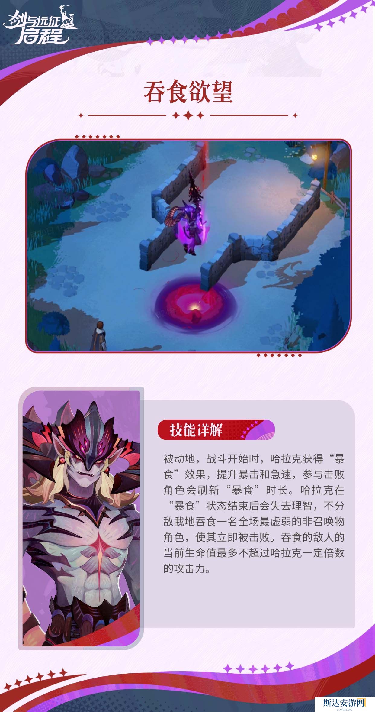 哈拉克是诞生于黑棘海一带的恶魔。他仿佛生来就是为了进食,欲壑难平的食欲让他源源不断地吞食眼前的一切,直到艾雅将他封印在海底,才暂时制止了他的破坏。接下来就由小编给大家带来了详细的《剑与远征:启程》哈拉克技能介绍!